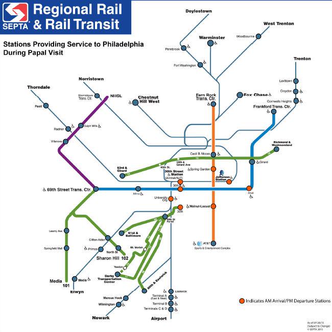 - The Broad Street and Market Frankford lines, as well as the Regional Rail, will stop at only 31 of the network’s 280 rail stations so that all trains can be used in a high-speed capacity and can be quickly recycled. Find a map of this here.
